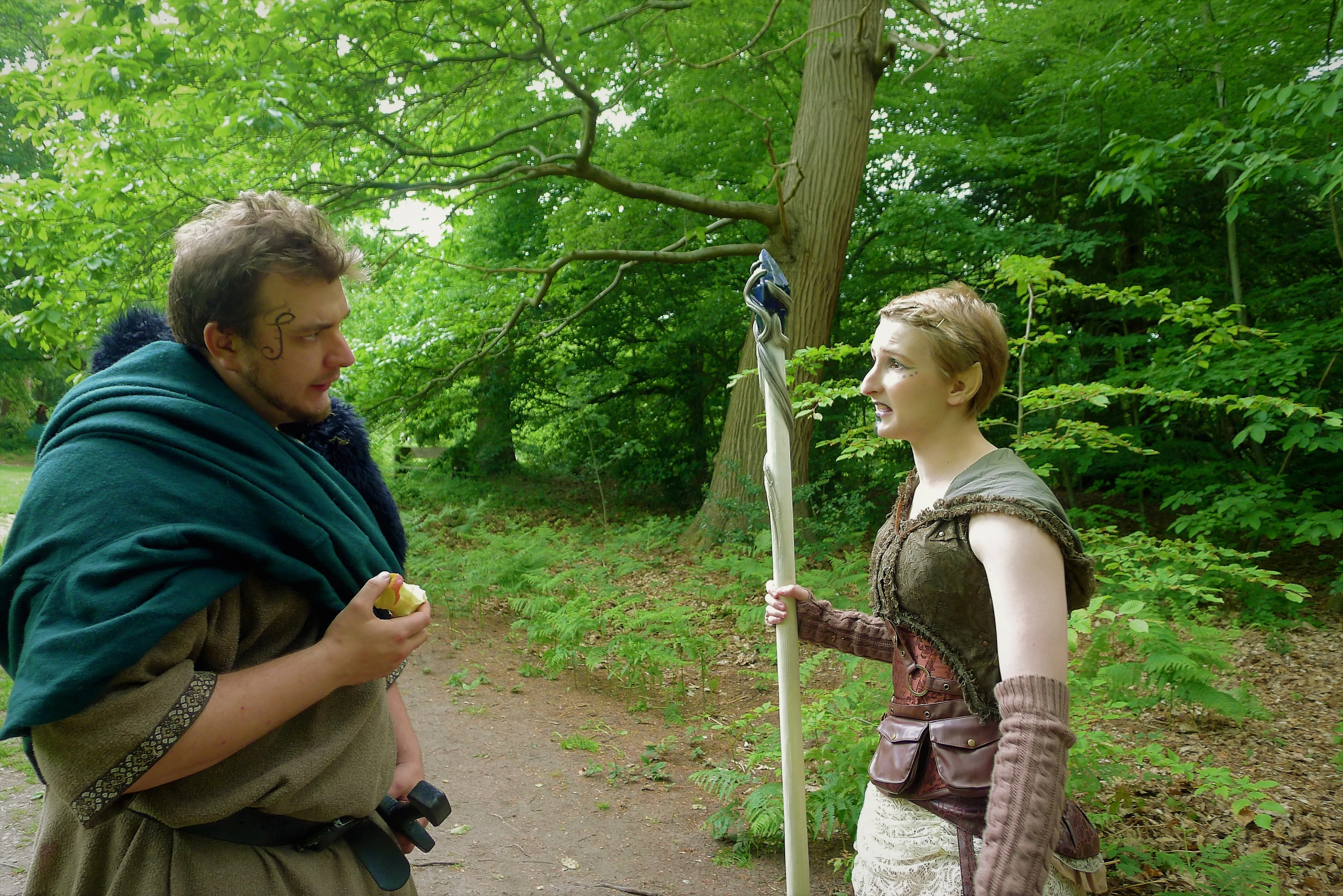 Elven fashion largely depends on age and upbringing. Younger Elves are more likely to dress according to the latest fashions, however older Elves will often stick to more traditional dress. Nomadic Elves will often dress in their own style, predominantly forest colours and practical clothing which may emphasise and display their tattoos. These are often made of practical wool and leather; however, the increase in trade due to the carvansarri’s have made fabrics such as silk and lace more accessible.